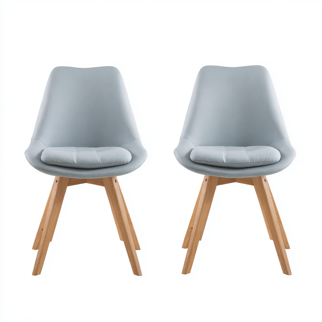 Esszimmerstühle - Kunstleder-Holz - 55x56x82 cm - Hellblau-Natur - Modernes Design
