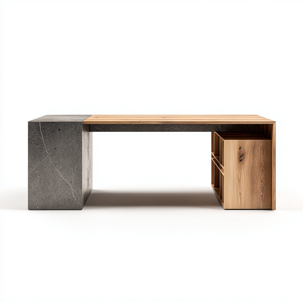Schreibtisch - Stein-Holz - 160x60x75 cm - Grau-Natur - Modernes Design