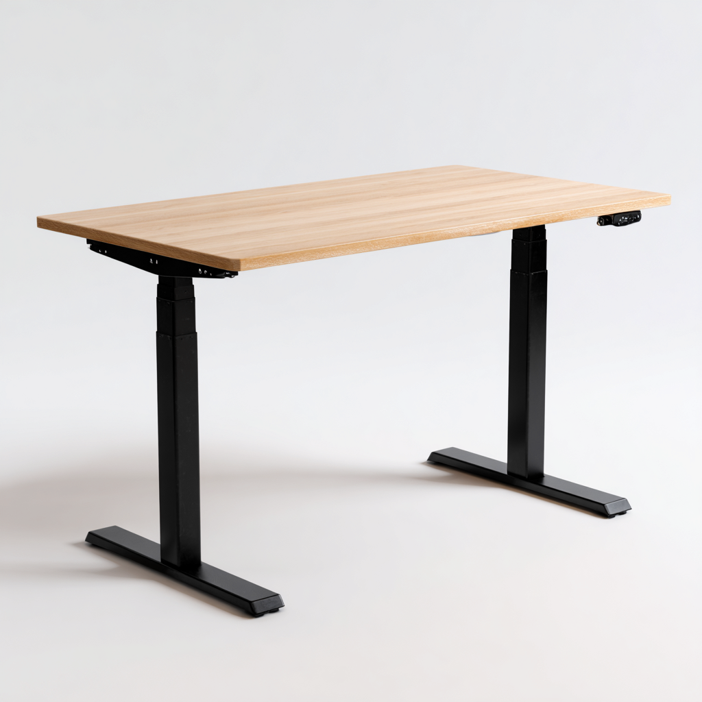 Schreibtisch - Holz-Metall - 140x70x75 cm - Natur-Schwarz - Elektrisch höhenverstellbar Modernes Design