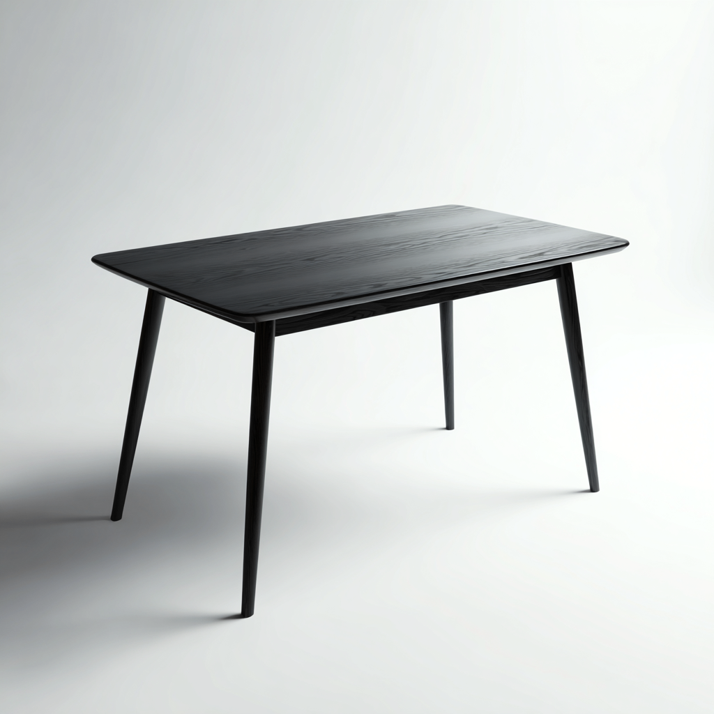 Die Tischplatte und die Beine bestehen aus massivem Holz in schwarzer Ausführung. Die glatte Oberfläche ist pflegeleicht und verleiht dem Tisch eine elegante, moderne Optik.