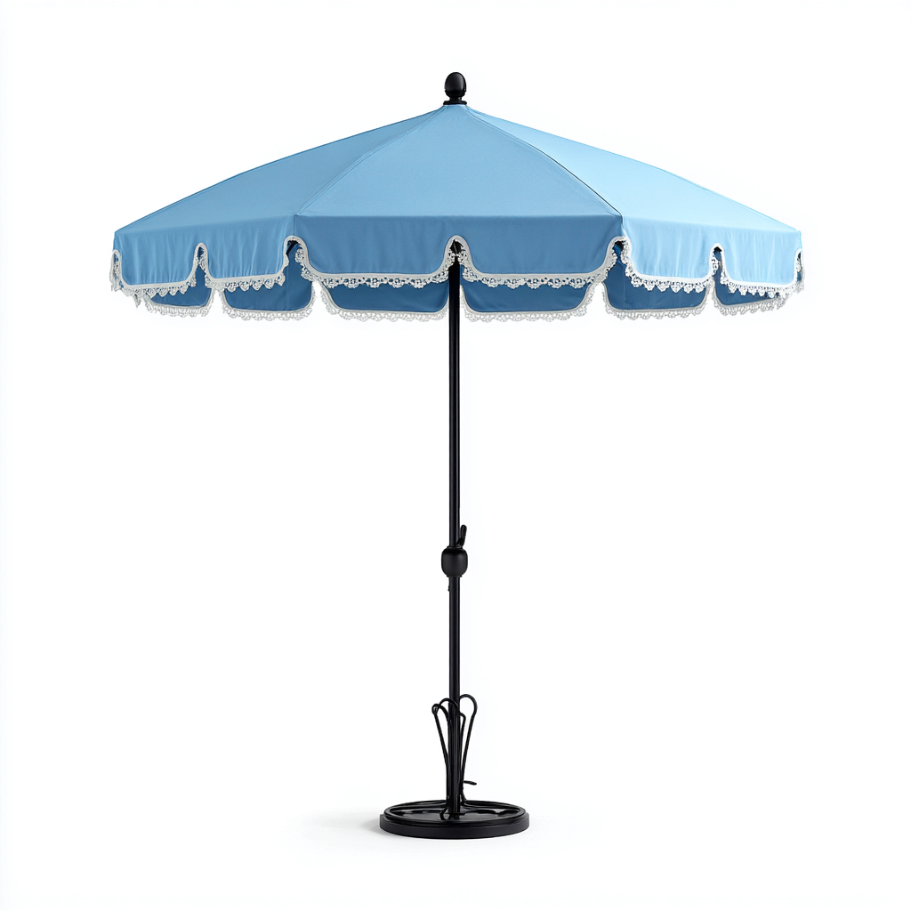Dieser dekorative Gartenschirm mit rundem Schirmdach und Spitzenvolant bietet stilvollen Sonnenschutz für Garten, Terrasse und Balkon. Das klassische Design sorgt für eine angenehme Schattenfläche und wertet jeden Außenbereich optisch auf.