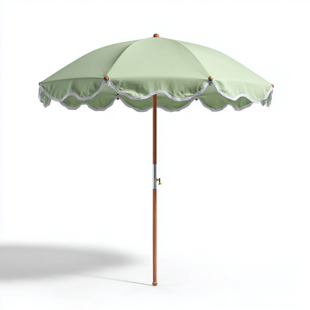 Dieser runde Gartenschirm im klassischen Volant-Design bietet zuverlässigen Sonnenschutz für Terrasse, Balkon und Garten. Das sanfte Hellgrün in Kombination mit der umlaufenden Wellenkante sorgt für ein harmonisches, sommerliches Gesamtbild.