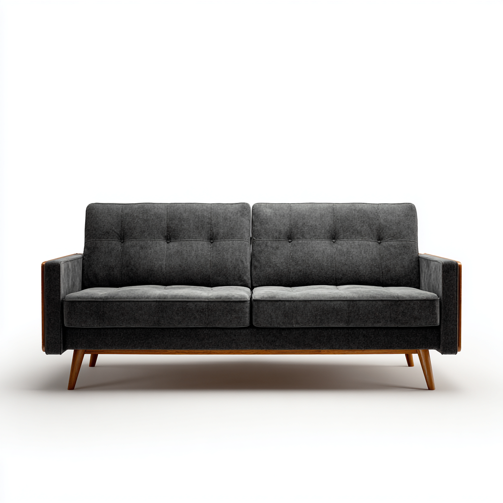 Dieses moderne gerade Sofa kombiniert eine klare Linienführung mit einer eleganten Stoffoberfläche in Dunkelgrau. Die seitlichen Holzpaneele bringen eine warme, natürliche Note ins Design, während die kompakten Proportionen das Sofa ideal für Wohnräume mit einem zeitgenössischen oder skandinavisch angelehnten Einrichtungsstil machen. Die Sitzfläche ist weich gepolstert und bietet angenehmen Halt für den täglichen Gebrauch.